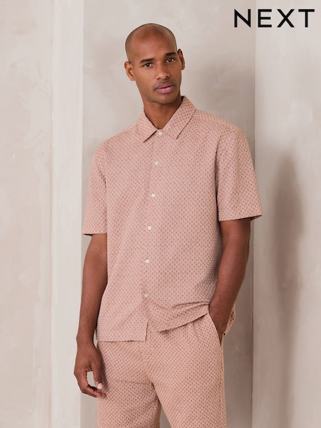 Rust Brown Textured Waffle Short Sleeve Shirt