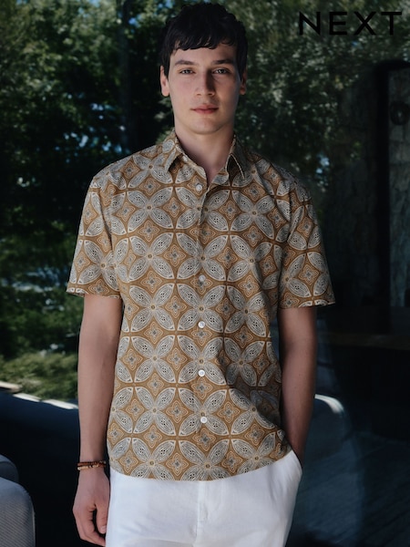 Yellow Tile Print Short Sleeve Shirt