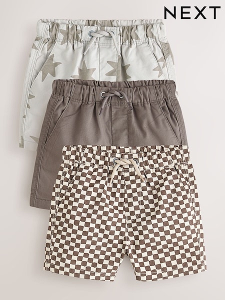 Brown/Star/Checkerboard Pull On Shorts 3 Pack (3mths-7yrs)