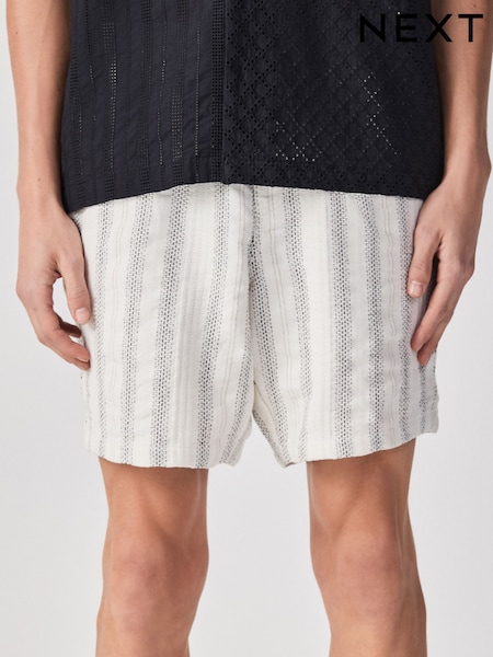 Monochrome Textured Elasticated Waist Cotton Shorts