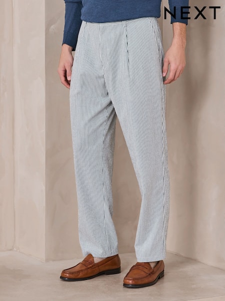 Blue Relaxed Fit Seersucker Stripe Suit Trousers