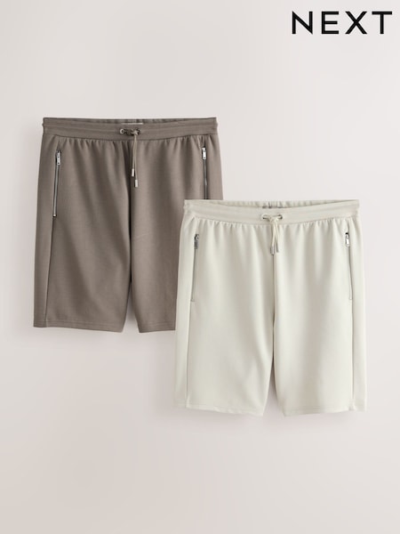 Stone/Light Brown 2 Pack Zip Pocket Jersey Shorts