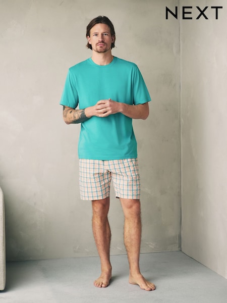 Teal Blue Woven Short Sleeve Pyjamas Set