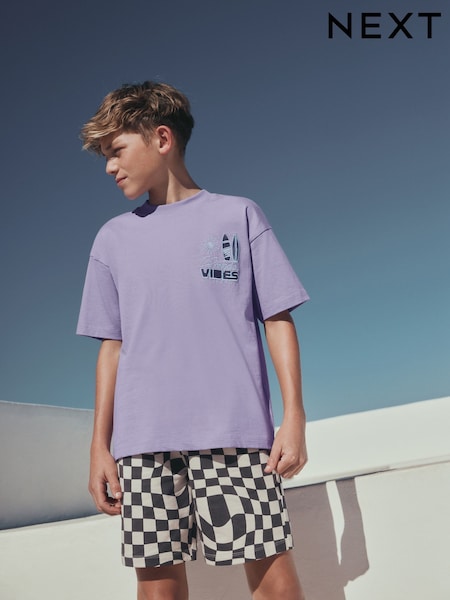 Purple Short Sleeve T-Shirt and Shorts Set (3-16yrs)