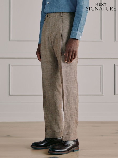 Neutral Signature Tailored Fit Moons Merino Wool Linen Blend Check Suit Trousers