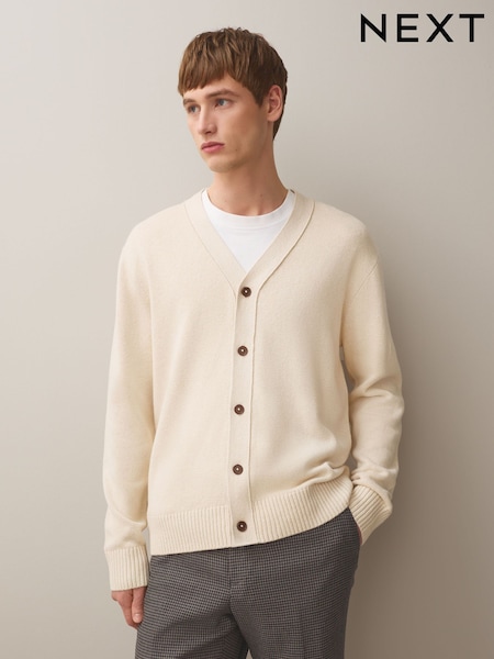 Neutral Relaxed Fit Linen Rich Cardigan