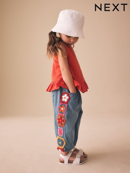 Denim Crochet Embroidered Barrel Jeans (3mths-7yrs)