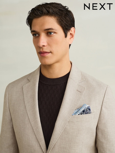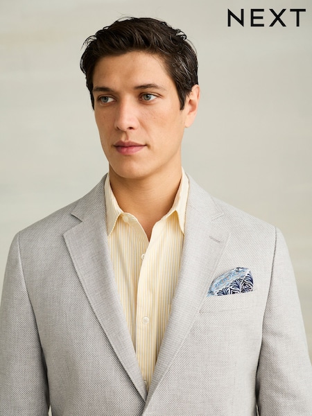 Light Grey Slim Fit Textured Linen Blend Blazer