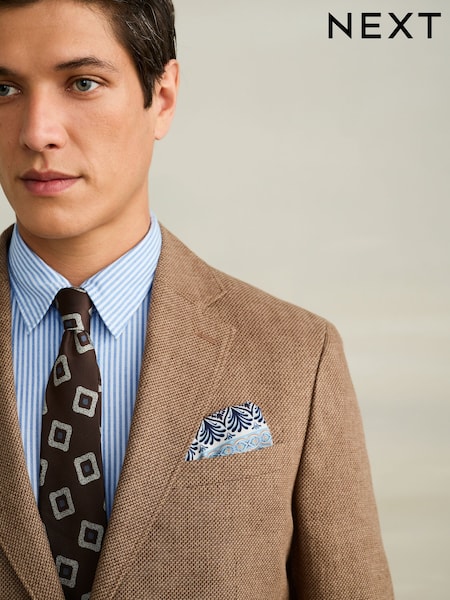 Taupe Brown Regular Fit Textured Linen Blend Blazer
