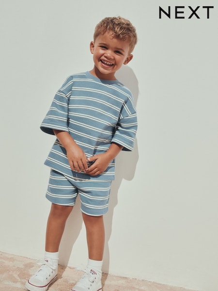 Blue Stripe Short Sleeve All-Over Print T-Shirt and Shorts Set (3mths-7yrs)