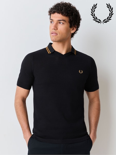 MOSS Black Terry Towelling Cuban Collar Shirt