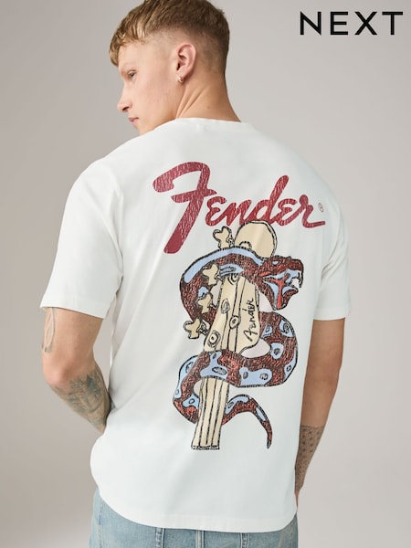 White Fender Regular Fit Band Graphic Print T-Shirt