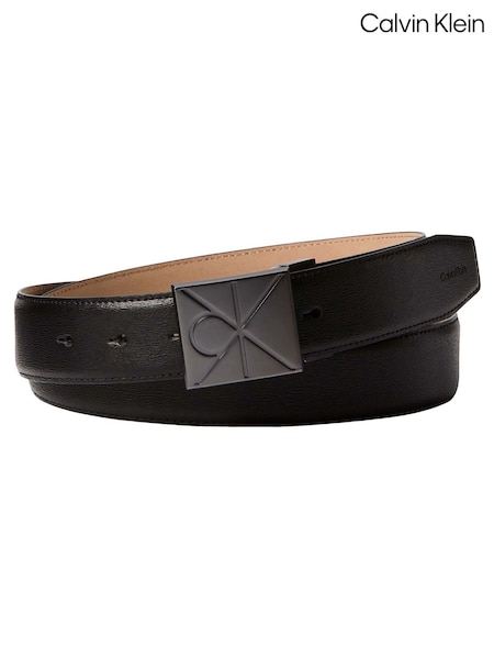 Calvin Klein Black Plaque Smooth Leather Belt