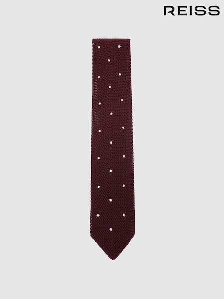 Reiss Burgundy Punto Spot Silk Knitted Pin-Dot Tie