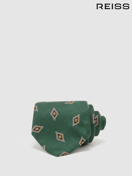 Reiss Forest Green Decio Silk Diamond Medallion-Print Tie