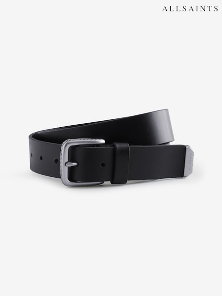 Black Signature Made In Spain Casual Leather Belt With Roller Buckle