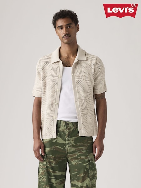 Khaki Green Stripe Crochet Short Sleeve Shirt