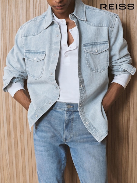 Reiss Navy Blue Medina Premium Interlock Zip-Through Overshirt