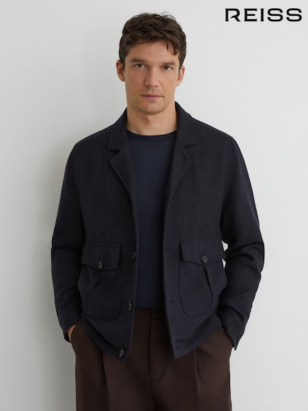 Reiss Navy Freddie Hybrid Quilt and Interlock Zip Jacket