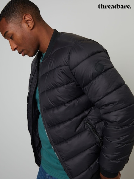 Threadbare Black Quilted Bomber Jacket