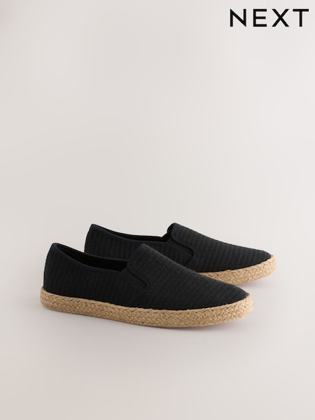 Black Textured Slip On Espadrilles