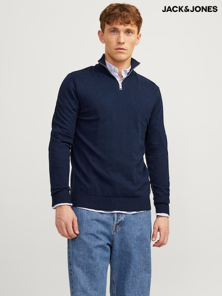 JACK & JONES Blue Half Zip High Neck Jumper