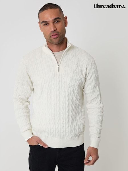 Threadbare Cream Cable Knit Quarter Zip Jumper