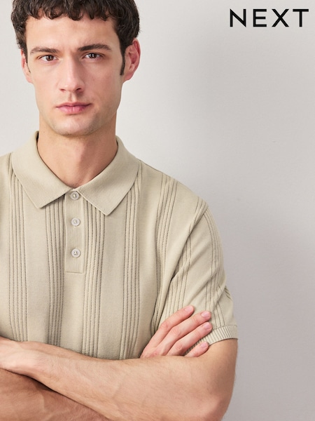 Neutral Regular Fit Cotton Rich Pointelle Stripe Short Sleeve Knit Polo Shirt