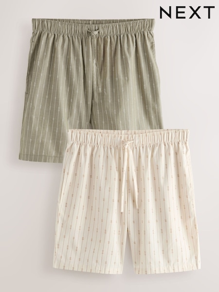 Green/Ecru Woven Stripe Pyjama Shorts 2 Pack