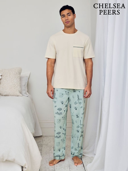 Chelsea Peers Green Weekend Club Print Long Pyjamas Set
