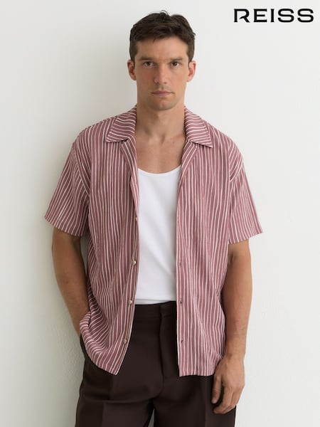 Reiss Rose Pink Max Textured Stripe Cuban-Collar Shirt
