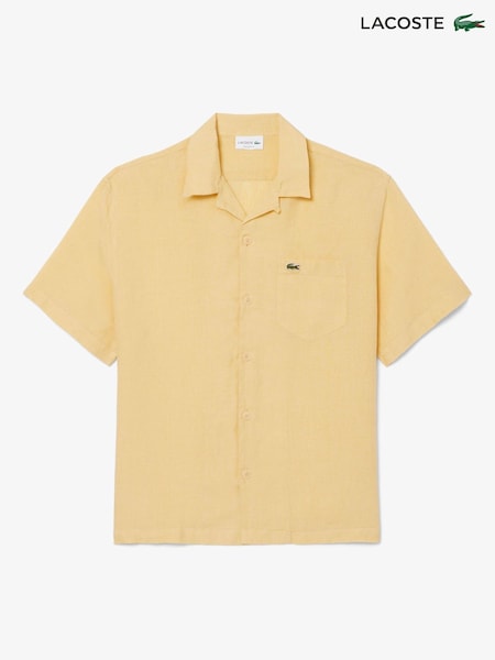 Lacoste Yellow Relaxed Fit Short Sleeved Linen Shirt