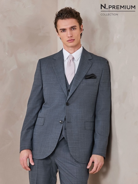 Grey Tailored Fit N.Premium Merino Wool Blend Texture Suit Jacket