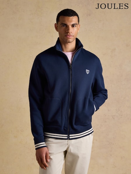 Joules Alistair Navy French Ribbed Knit Quarter Zip Sweatshirt