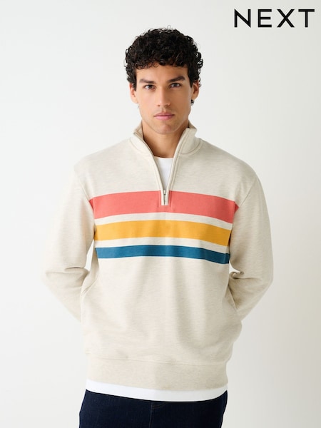 Ecru White Marl Colourblock Quarter Zip Sweatshirt