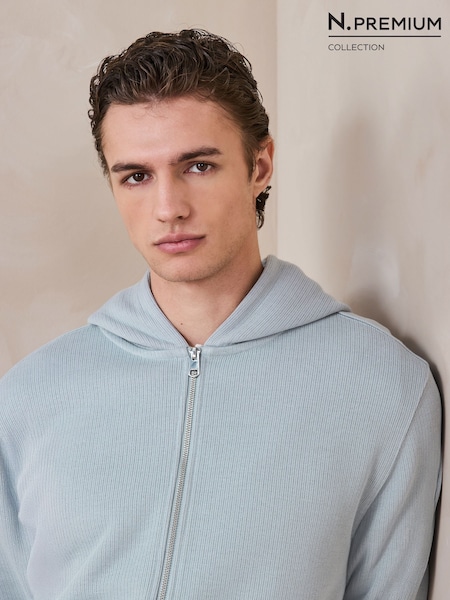 Light Blue Smart Rib Textured Zip Through Hoodie