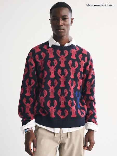 Abercrombie & Fitch Blue Printed Long Sleeve Crew Neck Sweatshirt