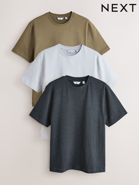 Charcoal / White / Stone Relaxed Fit Graphic Print T-Shirts 3 Pack