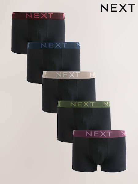 Black Red/Blue Textured Waistbands Hipster Boxers 5 Pack