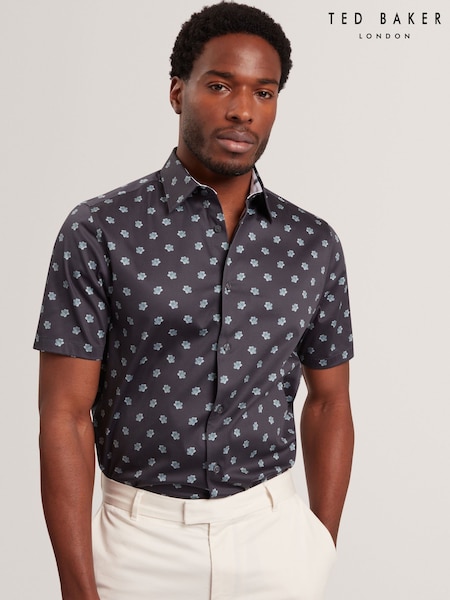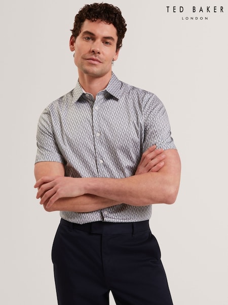 Ted Baker Grey Short Sleeve Regular Fit Leaf Print Geo Shirt