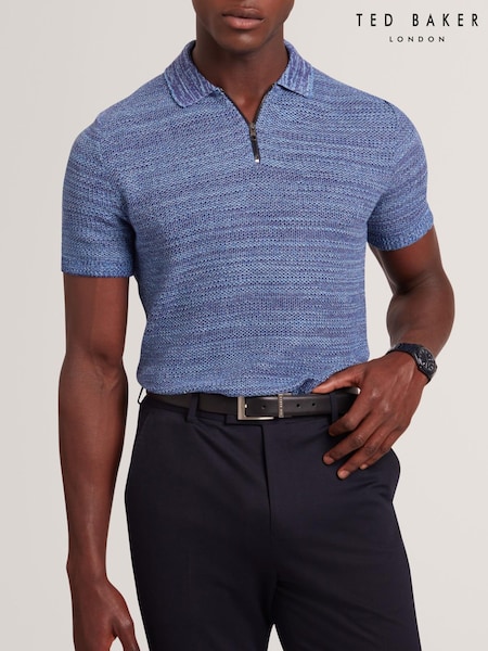 Ted Baker Blue Short Sleeve Zig Zag Stitch Polo Shirt