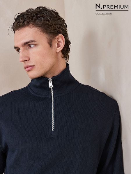 Navy N. Premium Smart Rib Textured Quarter Zip Sweatshirt