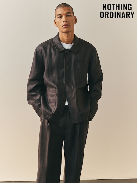 Nothing Ordinary Chocolate Brown Pure Linen Herringbone Chore Jacket