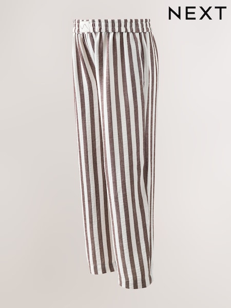 Brown Stripe Maternity Pull On Wide Leg Trousers with Linen