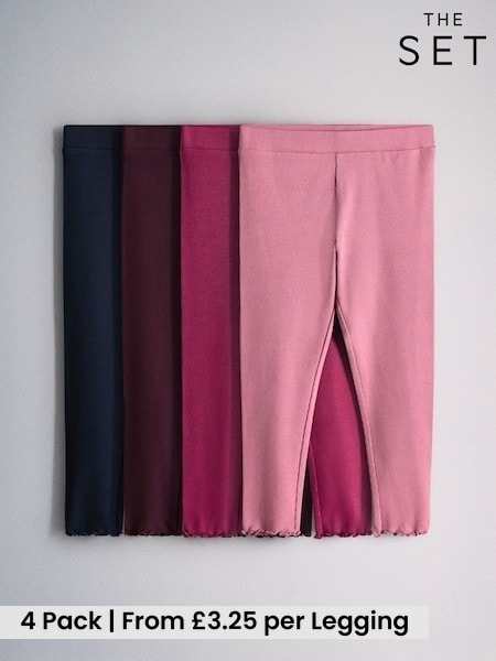 The Set 4 Pack Jersey Rib Leggings Pink/Navy Blue/Purple