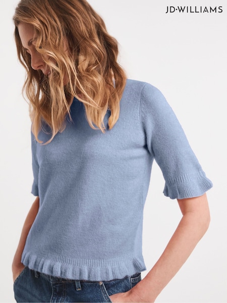JD Williams Blue Frill Knit Short Sleeve Jumper