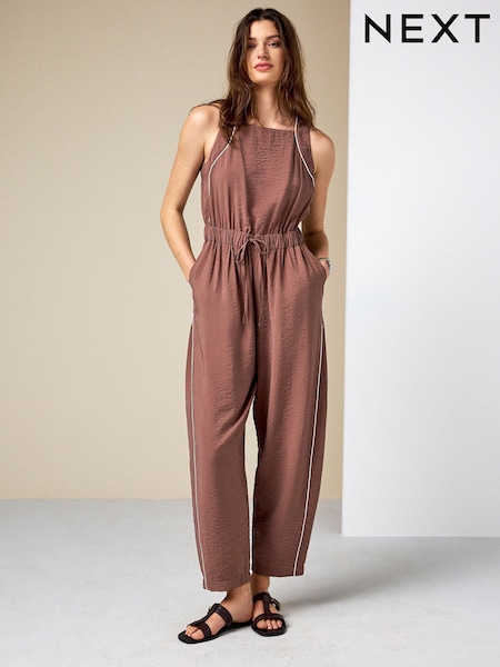 Yumi Brown Utility Relaxed Jumpsuit