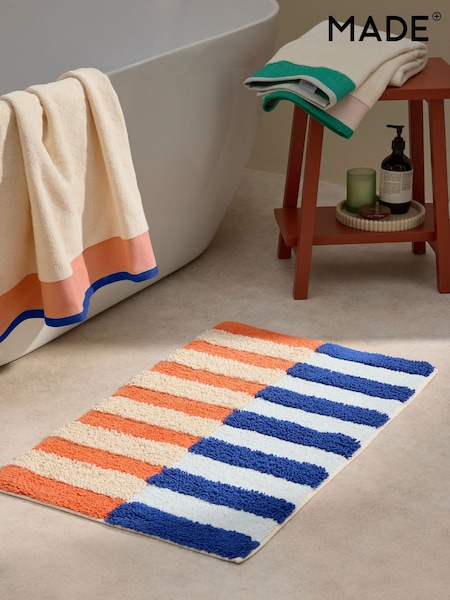 MADE.COM Navy/Orange Etly Stripe 100% Cotton Bath Mat