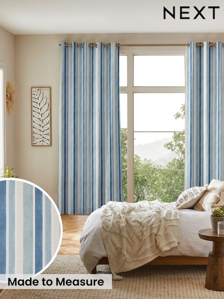 Blue Tufted Wiggle Pencil Pleat Blackout Curtains