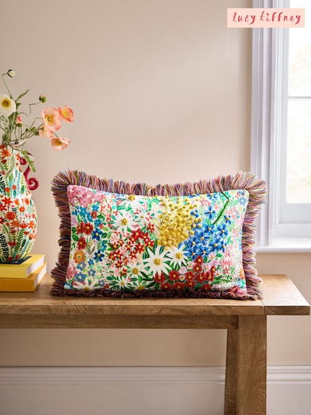 Lucy Tiffney Multi Periwinkle Floral French Knot Cushion